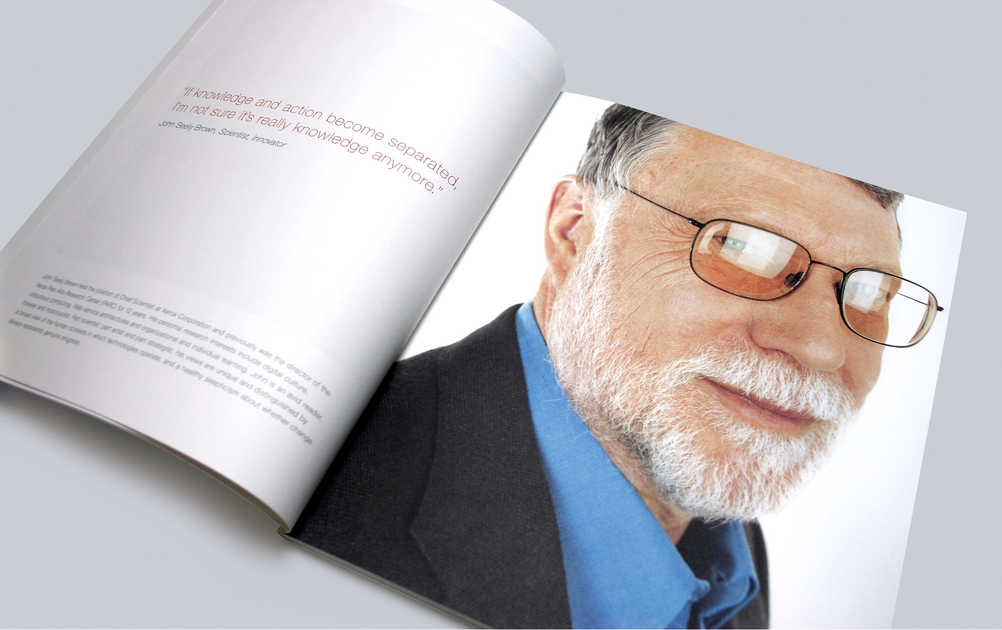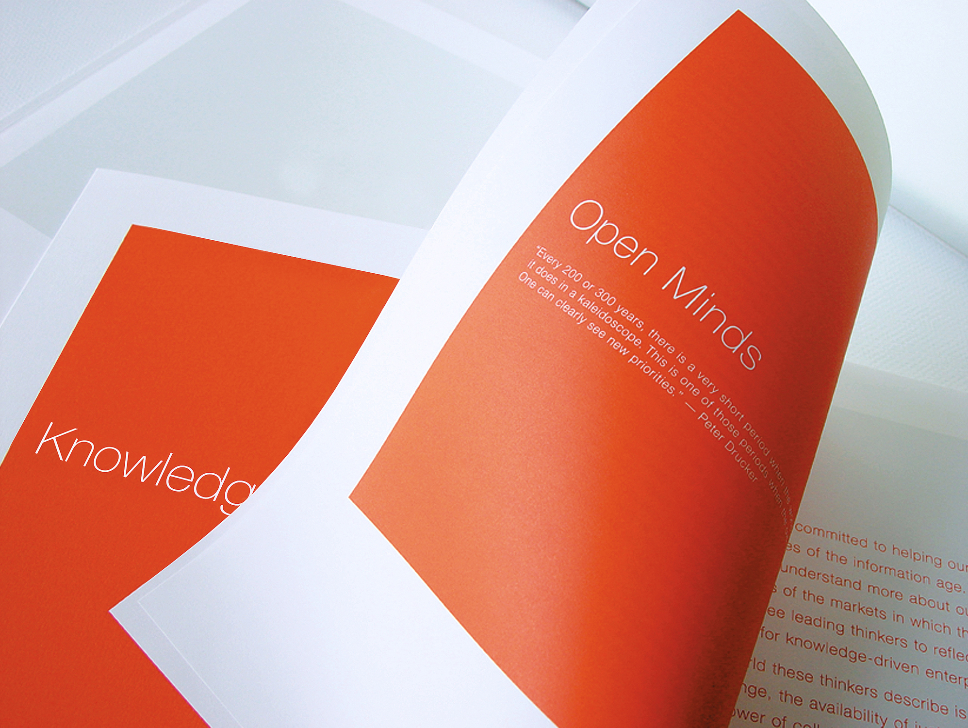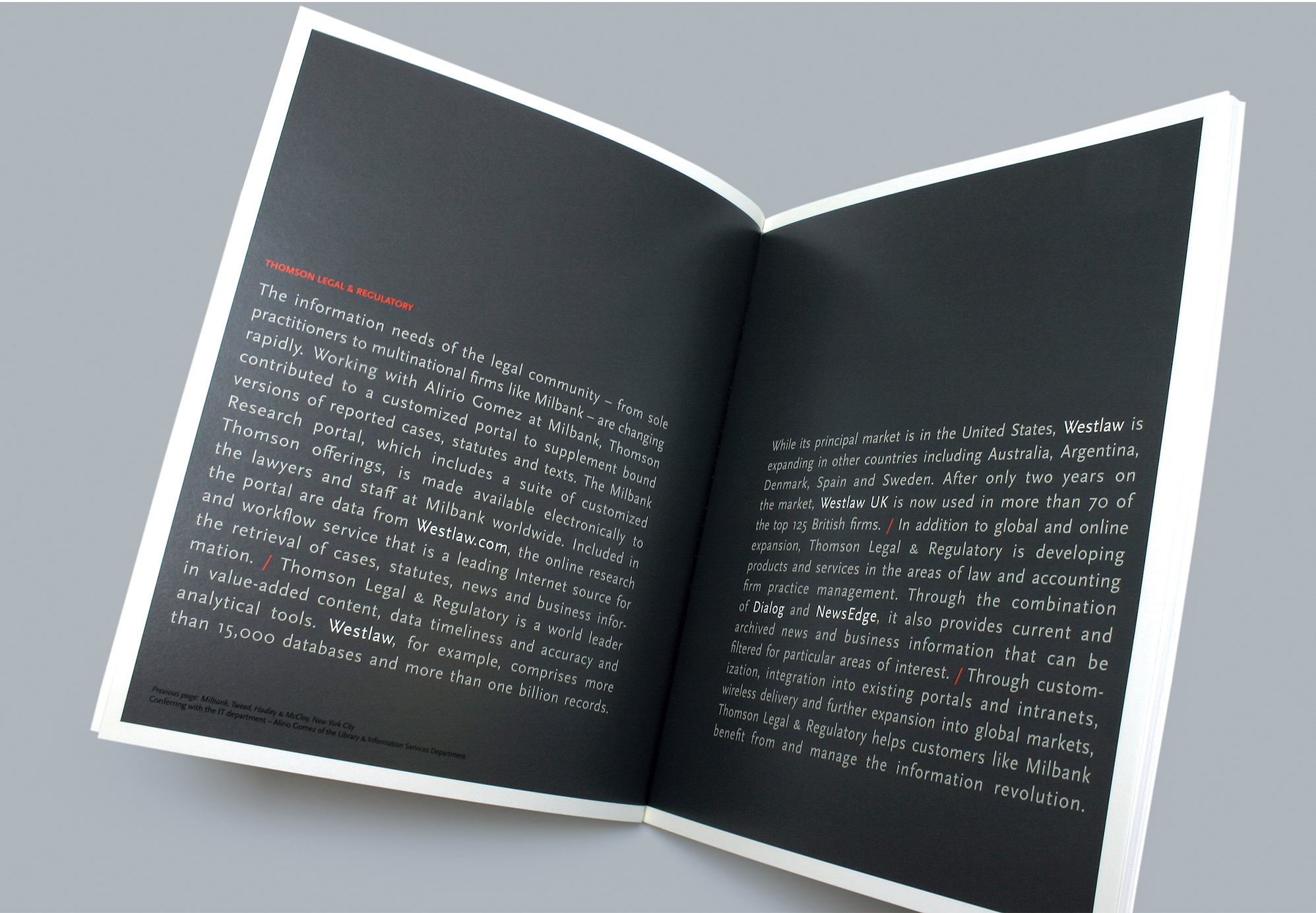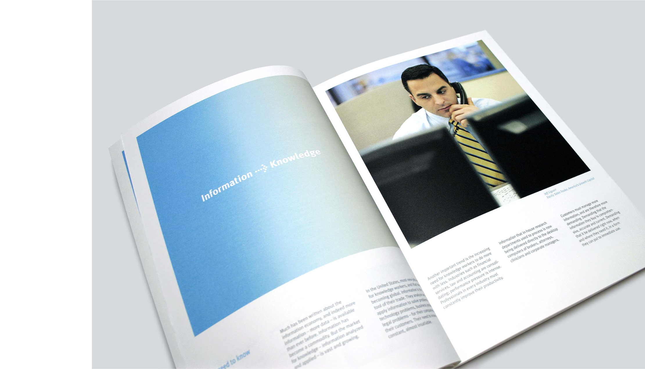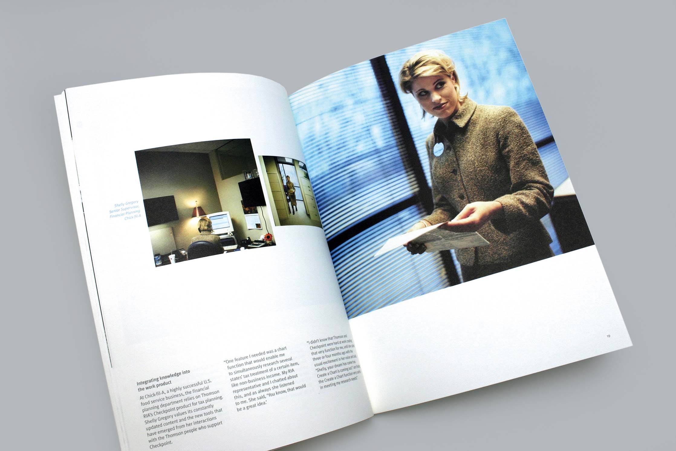 The annual report we created featured a series of well known experts speaking to the context Thomson was entering, that of information services. They addressed the coming digitization of the knowledge economy rather than directly endorsing or praising Thomson. Readers could use their own judgement to find a place for the company in the space described by the featured experts. Trust and credibility for Thomson were established through positioning Thomson as a reliable conduit or medium for information – not as attention-seekers making a hard sell, but as the connective tissue through which perspectives, analysis, and facts flowed.