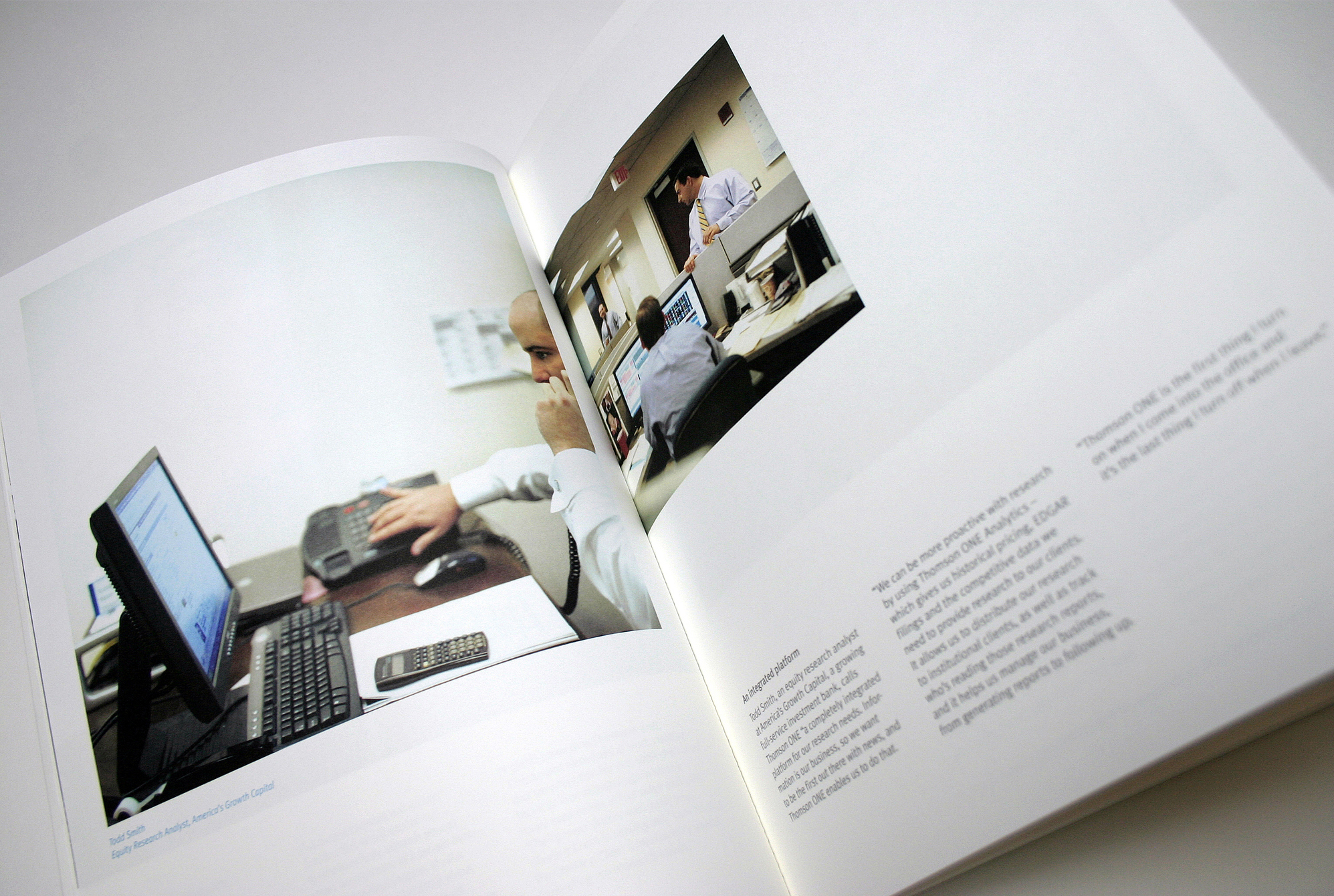 As a newcomer to the US market, and without a strong reputation, brand identity, web presence, or many printed materials, Thomson knew they needed communications that would credibly introduce them to prospective investors and clients. But they were uncomfortable with their previous annual report, produced by a large branding firm, which had sought to deemphasize Thomson’s status as a newcomer by focusing on their newly-acquired size.