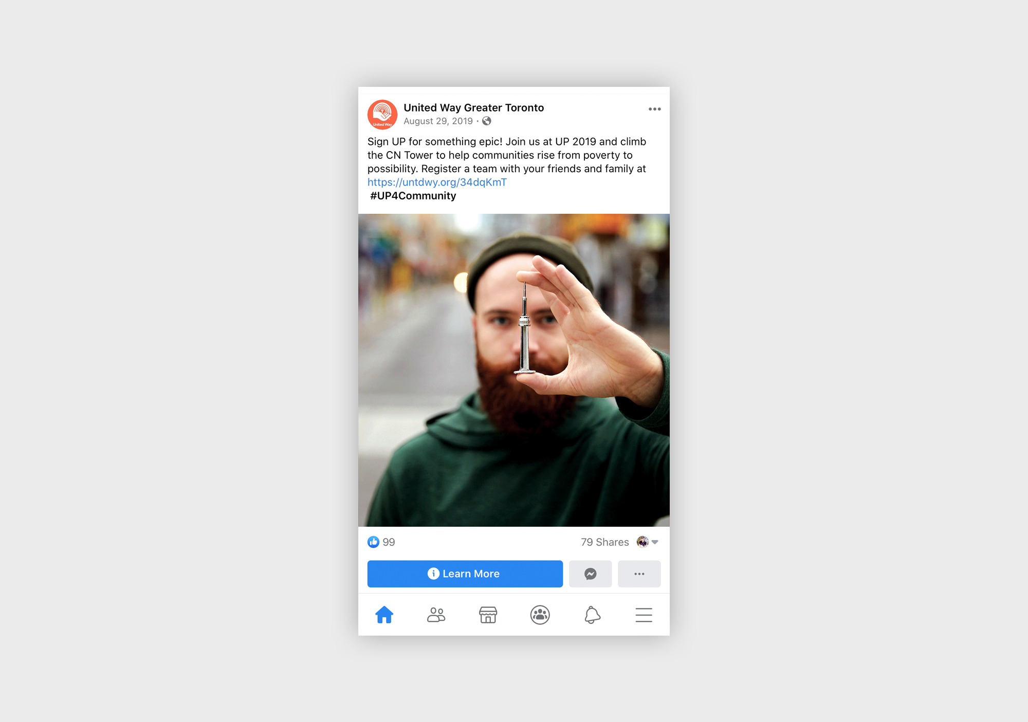 It was a powerful idea, and it resonated: more and more climbers have signed up each year since. Using the CN Tower itself as a metaphor, we reached engaged citizens through an advertising campaign illustrated the power of collective action. It led to 29% more people climbing those 1,776 steps in its first year.