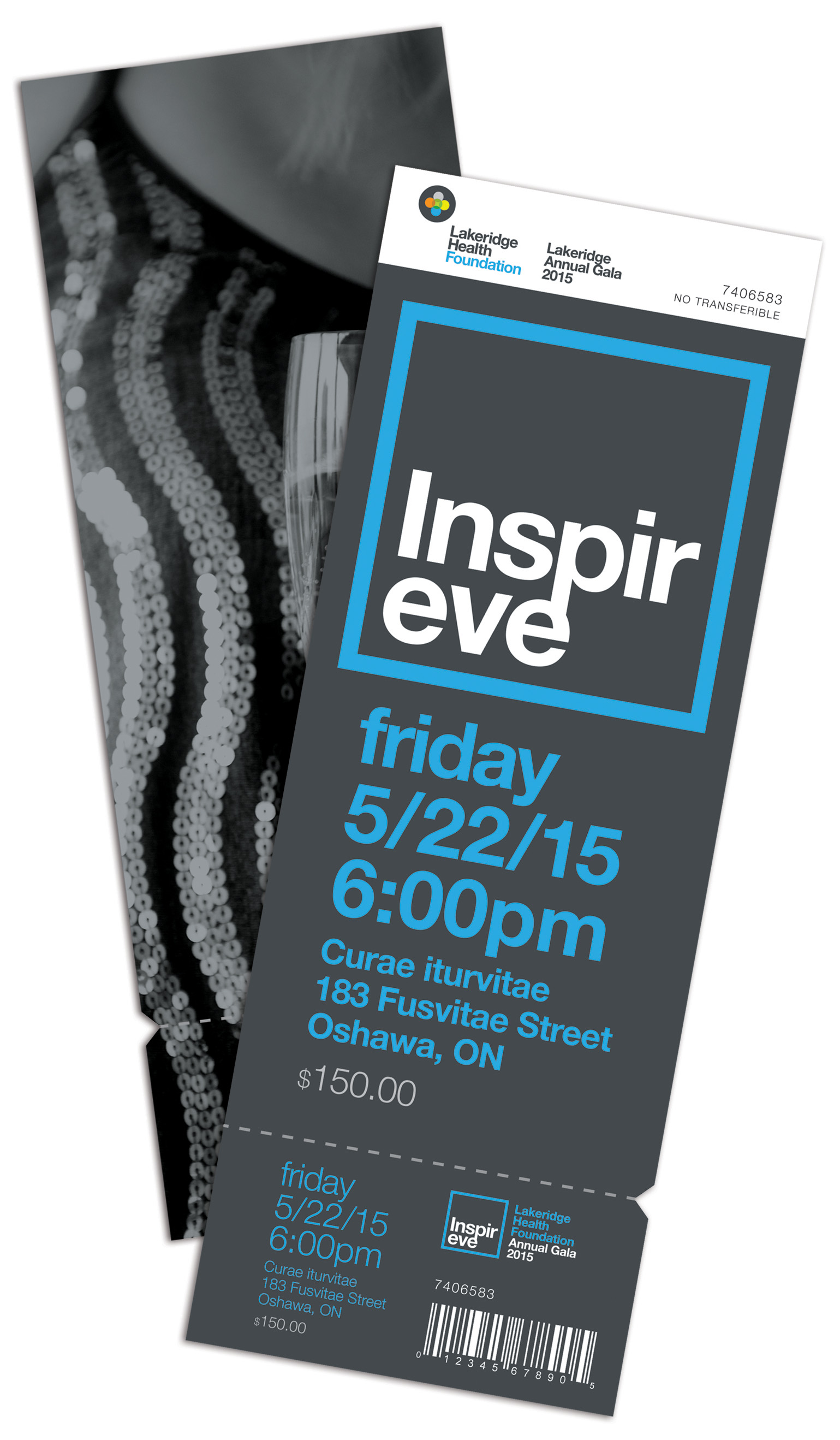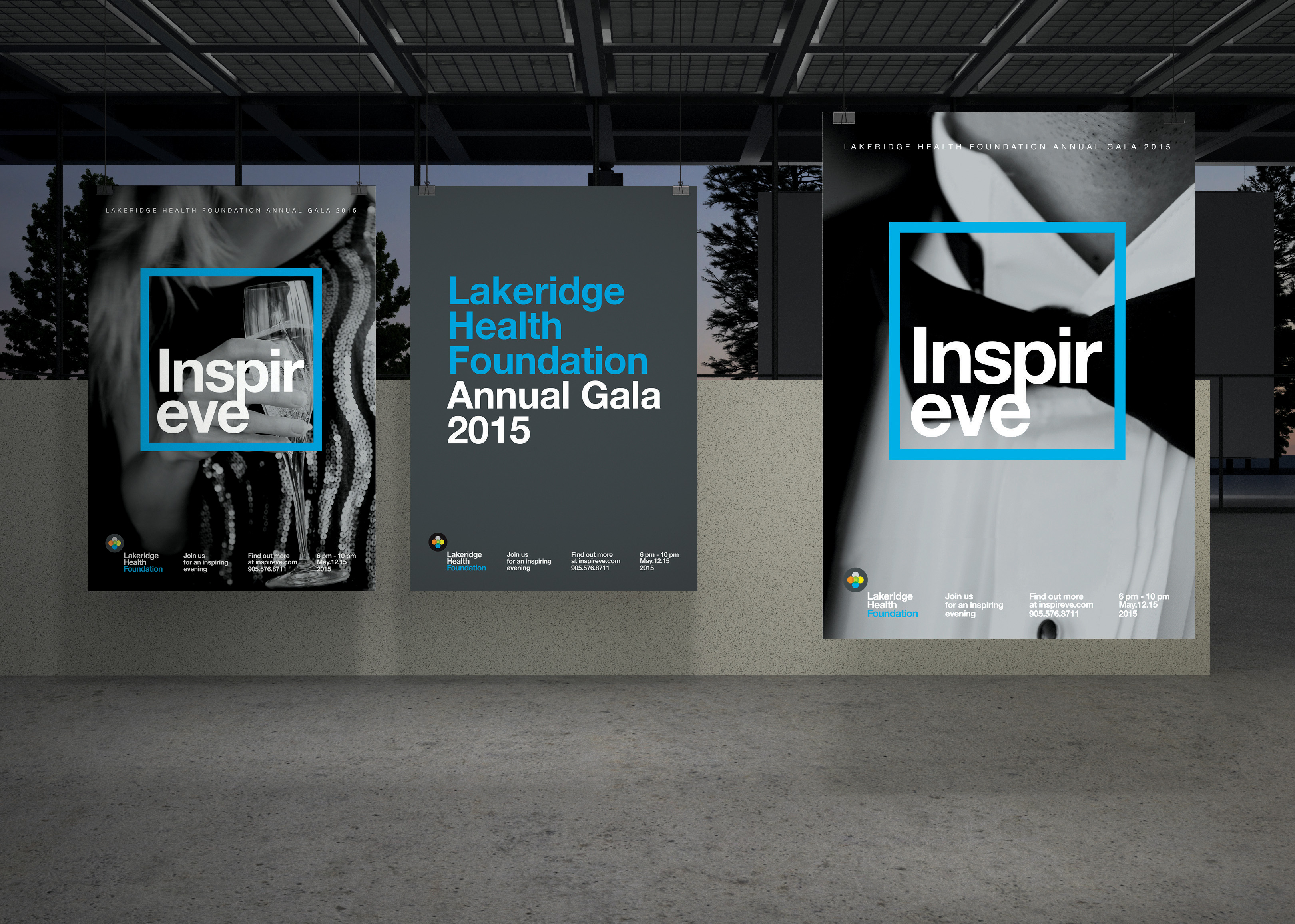 Reinvigorating an event brand—The Lakeridge Health Foundation orchestrates a number of fundraising events throughout the year. The Lakeridge Hospital Annual Gala is the cardinal event. It is organized around a different theme every year—resulting in a different look and style to support each successive theme. Unfortunately, this practice created market confusion and undermined any brand equity. We deliberately broke with that tradition. We worked with the Foundation to develop Inspireve—a new event brand. Inspireve offered the Foundation a clean slate and an opportunity to raise the bar and reinvent the event experience. Along with the event brand, Aegis also developed a range of branded communications. ⬤