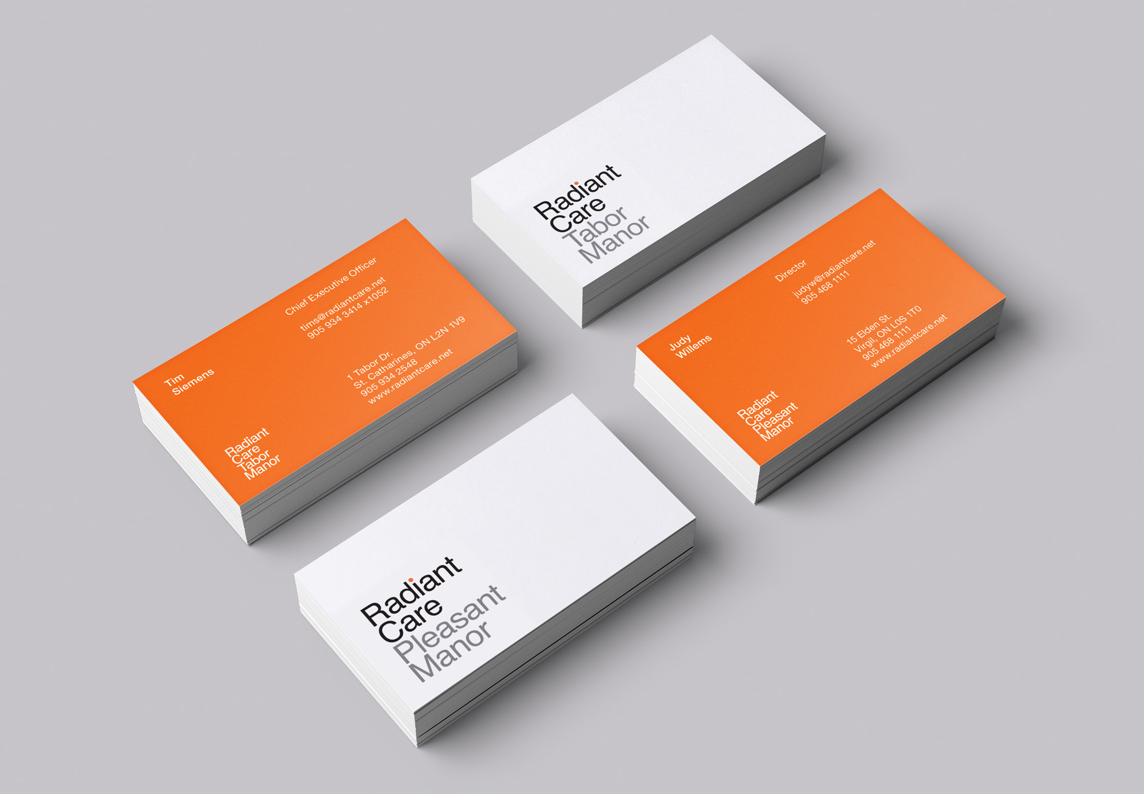 Universality from shared values—After an ethnographic exploration of both the internal and external stakeholder communities, we helped to reposition the organization around its core values of caring, compassion, and community. The result was a refreshed, universally compelling brand and value proposition that the organization already ‘lives’ and can deliver. We created a unifying name, Radiant Care, an identity, and messaging that conveyed the brand’s values of warmth and openness, and set expectations about the resident experience. ⬤